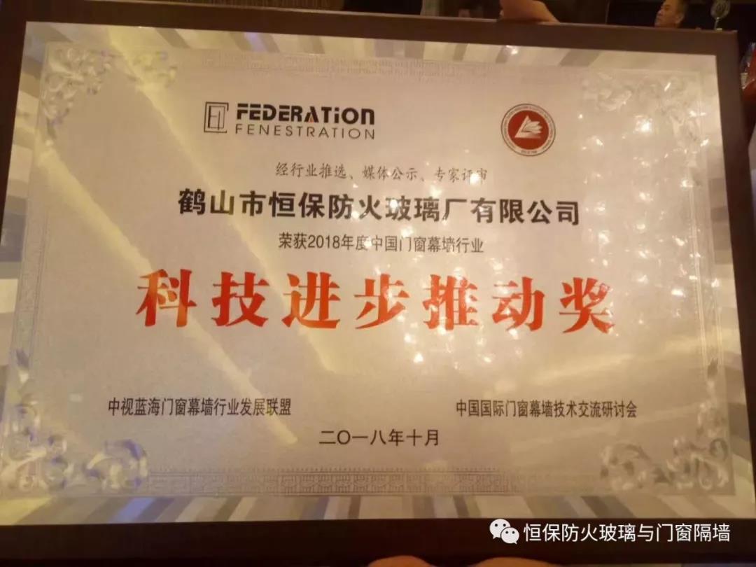 鶴山恒保公司在此次交流研討會中,獲大會專家評審并頒發(fā)2018年度中國門窗幕墻行業(yè)“科技進步推動獎”。