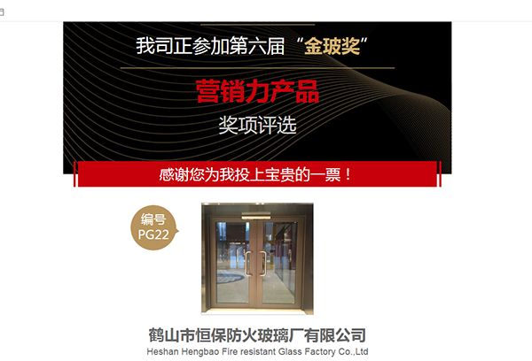 鶴山市恒保防火玻璃廠有限公司榮獲第六屆中國玻璃行業(yè)品牌評(píng)選營銷力產(chǎn)品獎(jiǎng)